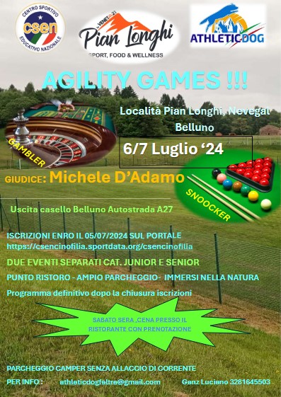 Si terrano a Località Pian Longhi, Nevegal (BL) il 6 e 7 luglio 2024 le due grandi competizioni organizzate dall'ASD Athletic Dog.