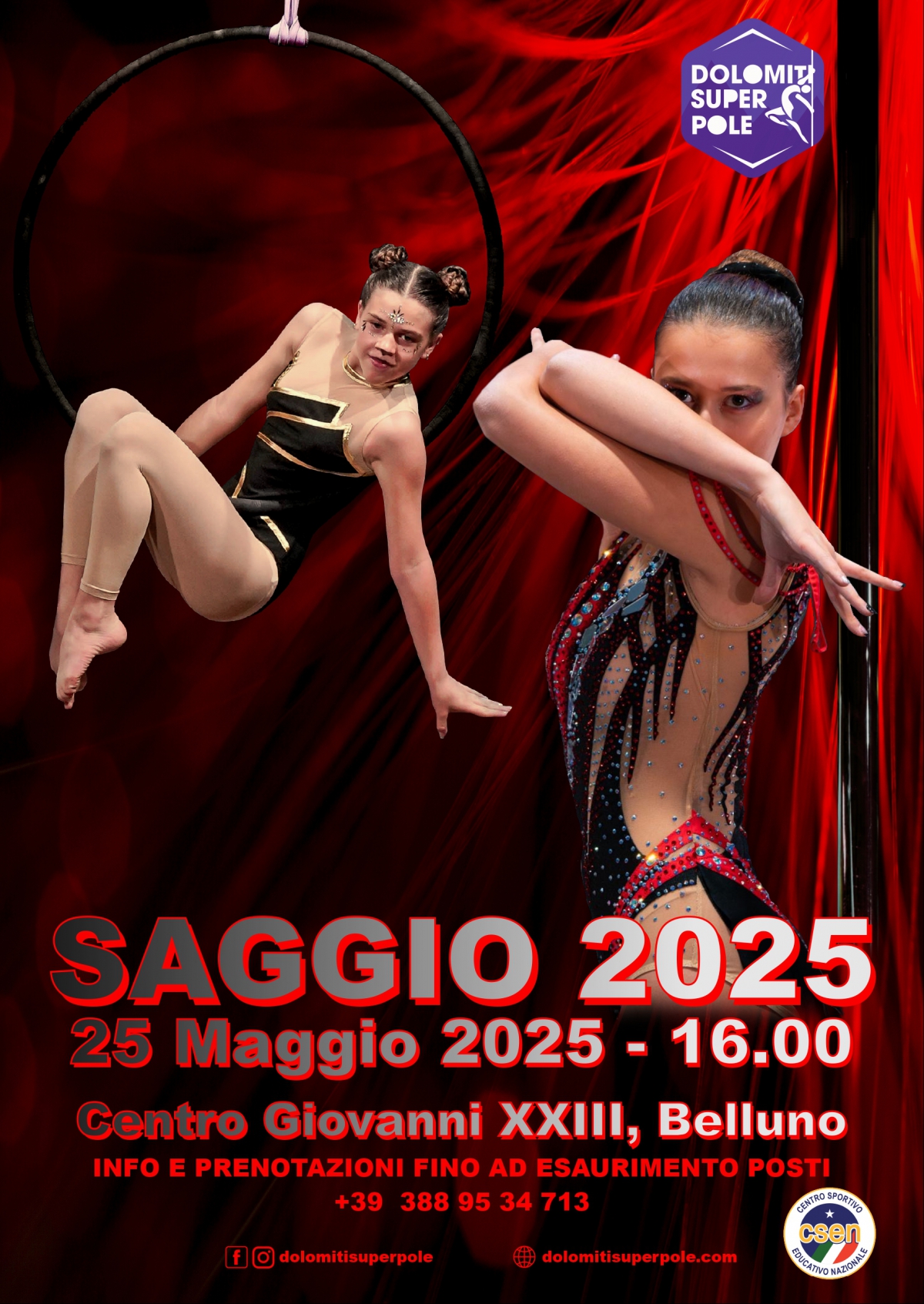 Tutto pronto per il Saggio 2025 organizzato da Dolomiti Super Pole, un evento che porterà sul palco le esibizioni delle allieve e degli allievi della scuola in una serata all’insegna dello spettacolo, della tecnica e della passione per le discipline aeree e coreografiche.